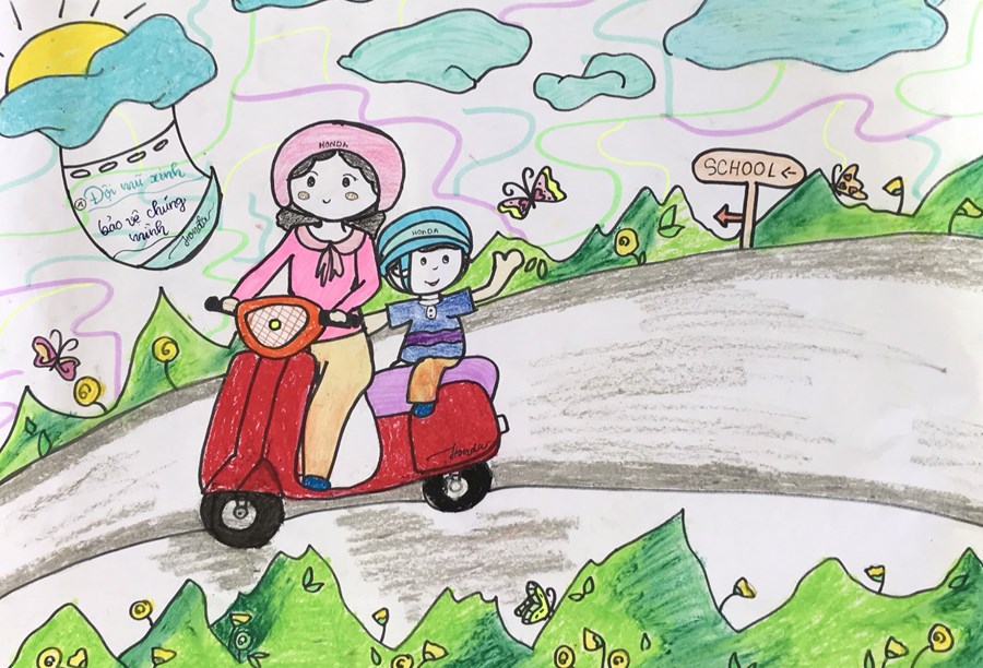 Vẽ Tranh "Đội Mũ Bảo Hiểm Xinh - Bảo Vệ Chúng Mình"