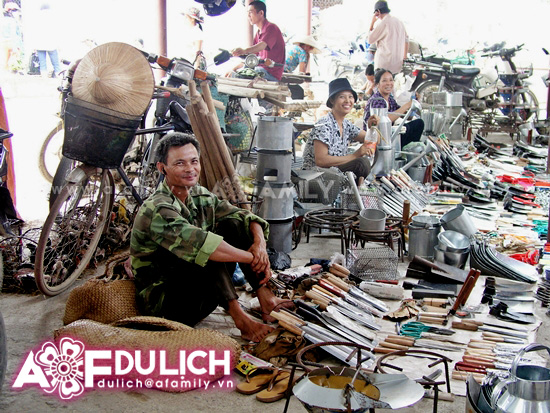 Và đồ gốm sứ. Khi đã mỏi chân hay cảm thấy chút ngột ngạt bởi sức nóng, khách có thể dừng chân ở những hàng quán quà vặt quanh chợ để tận hưởng những hương vị của các món quà quê bình dị, ngồi thư giãn ngắm quanh cảnh chợ.