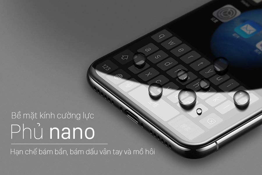 - Lớp phủ nano giảm thiểu tối đa hiện tượng vân tay khó chịu để lại trên màn hình, nâng cao trải nghiệm so với các loại kính khác