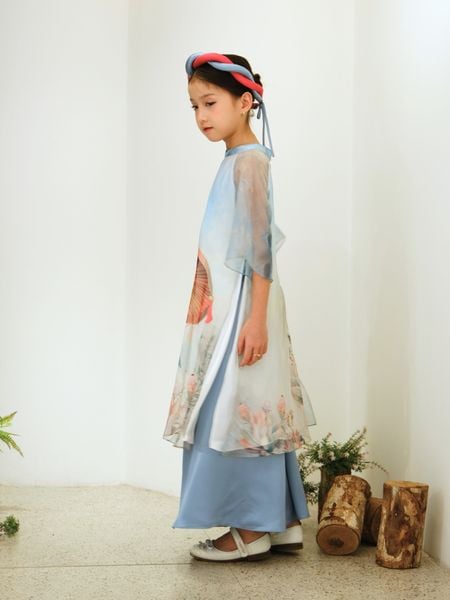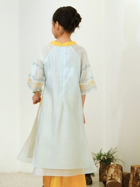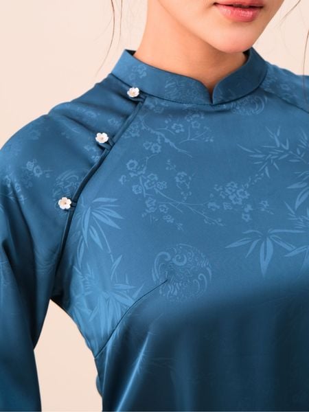 Bộ áo dài Nữ 2 lớp sóng nước - Xanh Ngọc