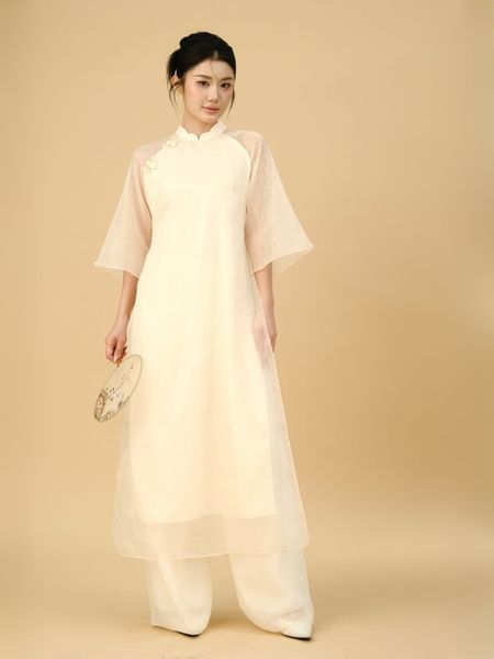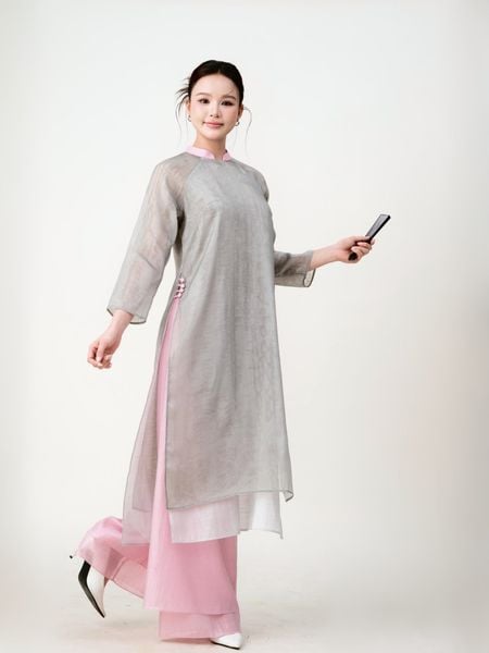 Bộ áo dài Nữ 2 lớp sóng nước - Xanh Rêu