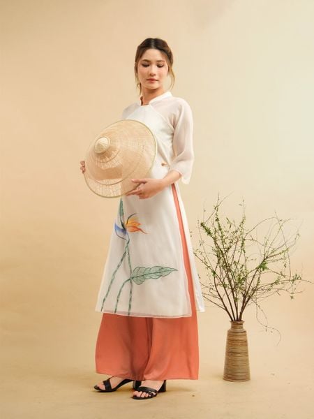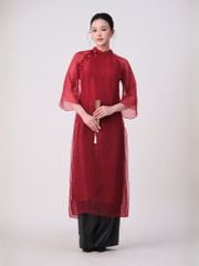 Bộ áo dài Nữ voan hoa văn - Đỏ