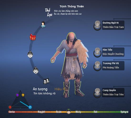 Trở thành ai trong Cửu Âm Chân Kinh… Dù vô tình hay hữu ý, khi người chơi tiến hành các hoạt động như bắt cóc, do thám, tuần tra, luyện công… cũng sẽ để lại ấn tượng cho NPC tốt hoặc xấu. Mức độ hảo cảm với NPC sẽ phần nào quyết định việc NPC đó có thích thú để trao kỳ ngộ cho người chơi hay không.