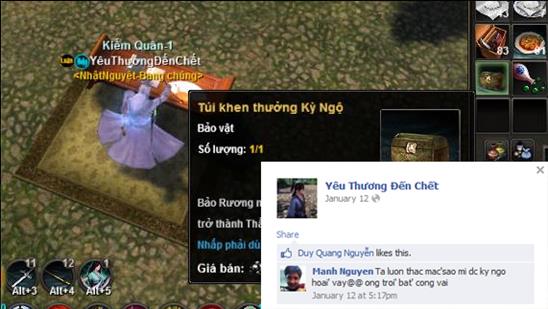 YêuThươngĐếnChết- Nhân vật khiến tất cả gamer phải ghen tỵ Khang chia sẻ: “Mình chơi Cửu Âm Chân Kinh khá lâu rồi, nên cũng có thể gọi là quen với việc làm Kỳ Ngộ, bản thân đó là một tính năng “hên xui” nên gọi là bí quyết gì dẫn tới điều đó cũng hơi khó định nghĩa (Cười). Ngoài việc làm các nhiệm vụ và đi làm hoạt động bình thường, thì khi khá rảnh rỗi mình lại đi “cày” hảo cảm với NPC, hy vọng là thành công chứ không hề có điều gì chắc chắn. Có nhiều cách cày hảo cảm, không nhất thiết phải tặng vật phẩm, mà còn tùy vào NPC đó là Hiệp Sĩ hay là Ác Nhân nữa. Ví dụ, với NPC Hiệp mà mình bắt cóc người chơi offline rồi tới ngồi thiền trước mặt NPC đó thì sẽ bị âm (-) hảo cảm, nhưng đối với NPC Ác thì nó lại rất thích điều này. Tùy cách hành xử và tìm hiểu một chút về NPC thôi, vì tính năng này hoàn toàn liên kết với NPC”. Kết Có câu “Hữu duyên thiên lý năng tương ngô. Vô duyên đối diện bất tương phùng”. Thật vậy, có những người mới tham gia Cửu Âm Chân Kinh đã gặp được Kỳ Ngộ, nhưng cũng có những người tham gia game từ đầu tới giờ vẫn chưa nhận được những nhiệm vụ hấp dẫn này lần nào. Còn bạn, đã bao nhiêu lần có được cái “Duyên” đó trong đời? Viết bình luận