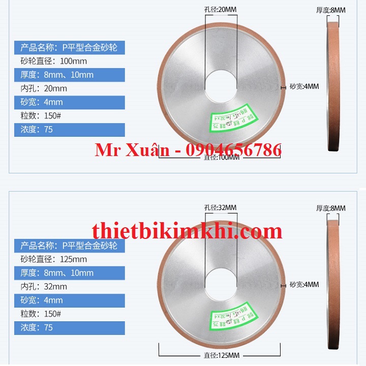 Đá mài hợp kim dạng đĩa 125mm với đường kính lỗ 32mm có các chiều dầy 8, 10mm