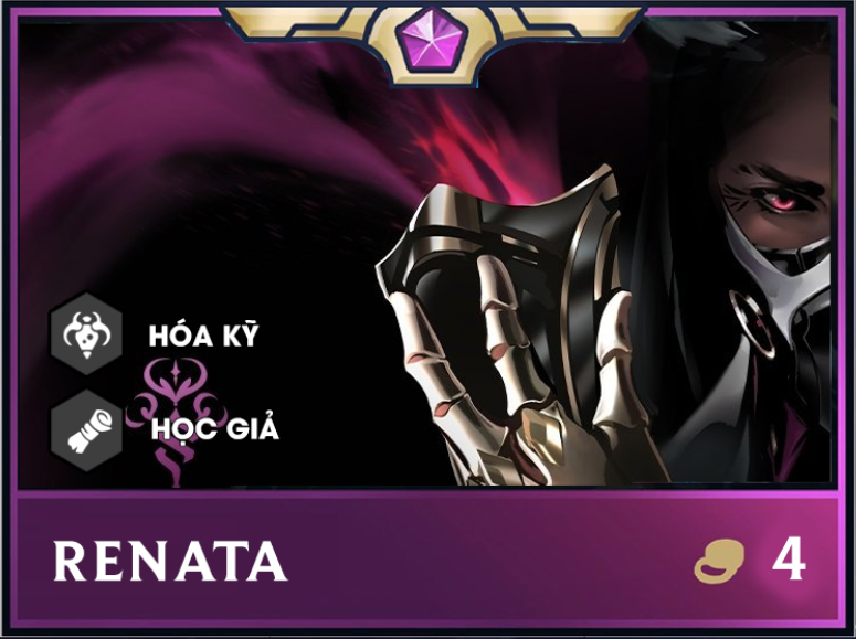 Renata là vị tướng vừa được Riot thêm ngay vào Đấu Trường Chân Lý mùa 6.5 với bộ kỹ năng "độc" lạ và mạnh mẽ xứng đáng với giá trị 4 vàng, điều này đã được chứng minh bởi game thủ khi đội hình Renata Đấu Sĩ - Hoá Kỹ được ví như "bãi rác" ĐTCL khi mà thống trị trong phiên bản vừa qua và ngay cả ở meta hiện tại mặc dù không còn quá mạnh như trước vì bị Riot nerf.