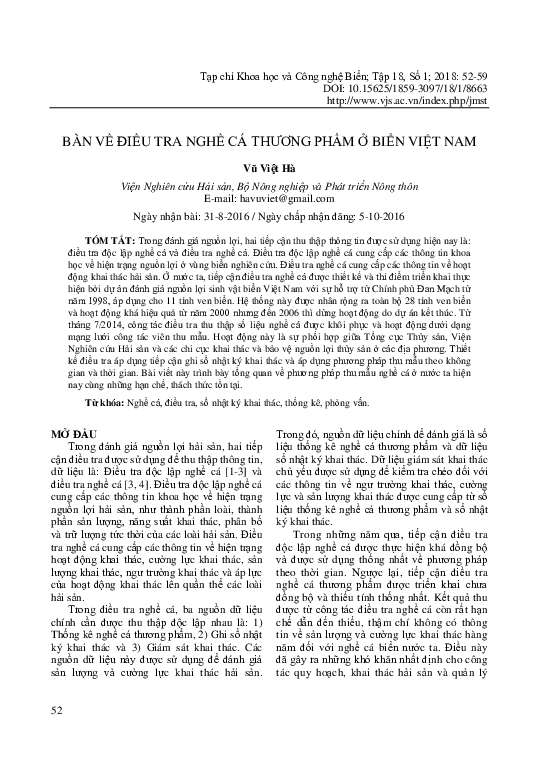 Nhung PhạmdownloadDownload free PDFBàn Về Điều Tra Nghề Cá Thương Phẩm Ở Biển Việt Nam