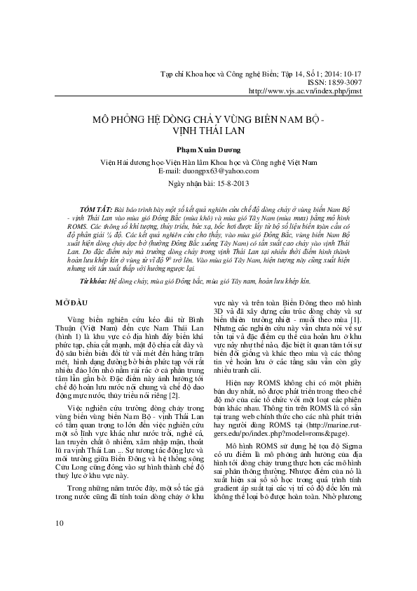 Huy LêdownloadDownload free PDFMô Phỏng Hệ Dòng Chảy Vùng Biển Nam Bộ - Vịnh Thái Lan