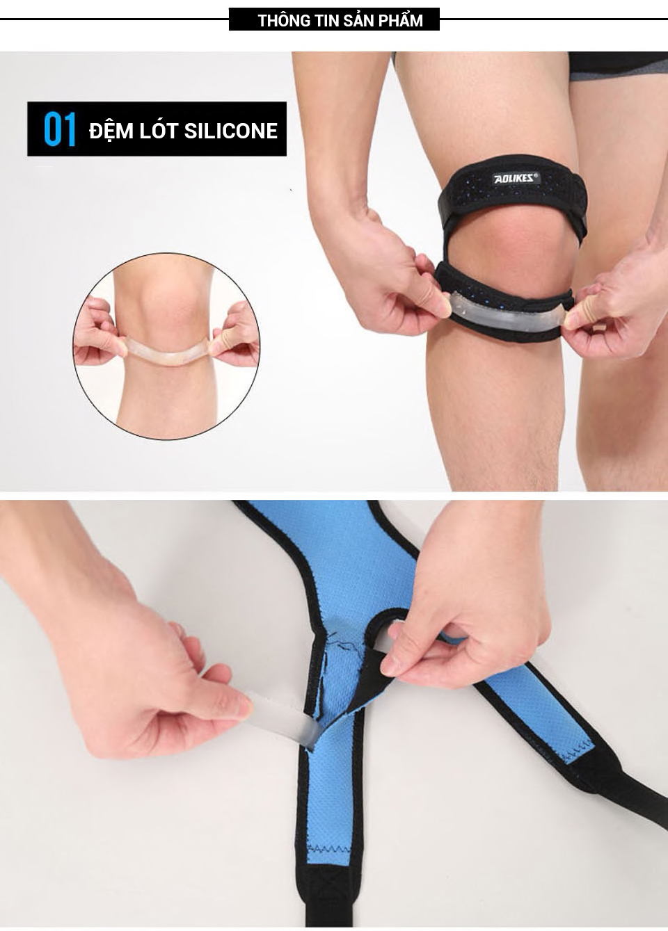 Đai bảo vệ gối đệm silicone chống trượt Aolikes AL7928 là trợ thủ đắc lực dành cho người chơi các môn thể thao như: Chạy bộ, leo núi trong nhà, đạp xe, trượt ván, nhảy dây, đá cầu,…