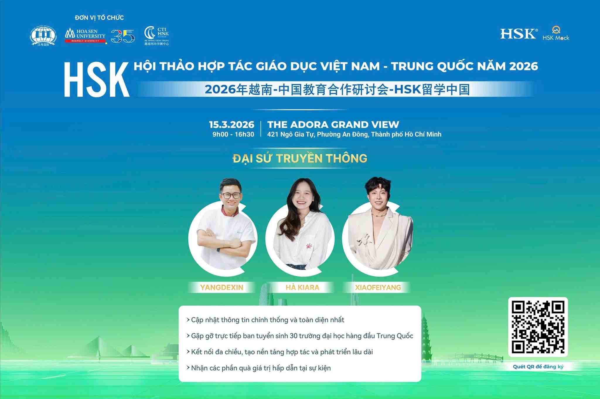 Hội thảo hợp tác giáo dục Việt Nam – Trung Quốc 2026: “Du học Trung Quốc với HSK” Ngày 15/03/2026