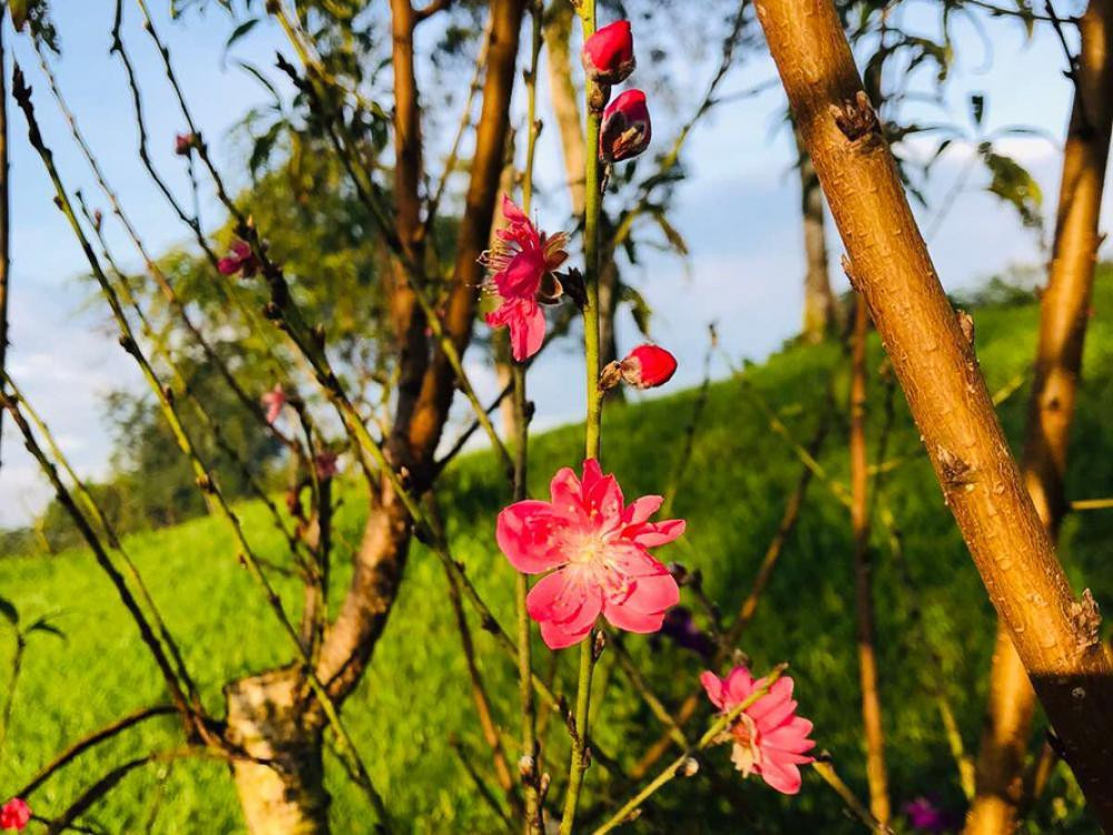 | Lối kiến trúc cổ và hoa đan xen nhẹ nhàng khoe sắc |