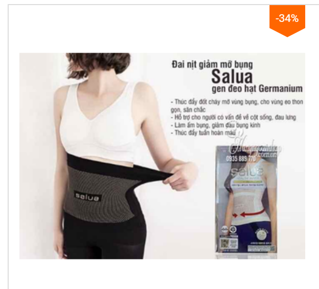 Đai nịt giảm mỡ bụng Salua có tốt không?✦ Đai nịt giảm mỡ bụng Salua - Gen đeo hạt Germanium được nghiên cứu và sản xuất tại Hàn Quốc. Sản phẩm được nghiên cứu và chứng minh lâm sàng là giúp thu gọn vùng eo, đánh bay mỡ thừa vùng bụng. Đặc biệt khi bạn sử dụng thường xuyên và đeo khi tập luyện, hiệu quả sẽ nhanh hơn rất nhiều, mỗi giờ đốt cháy thêm 376 kalo.