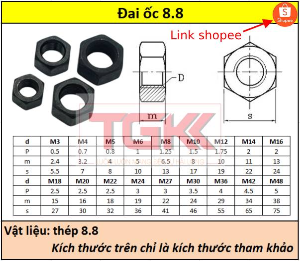 Đai ốc 8.8 M3-M42 - Siêu Thị ốc Vít