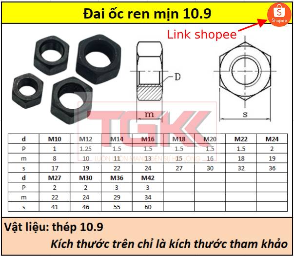 - Đai ốc ren mịn 10.9 M10-M42