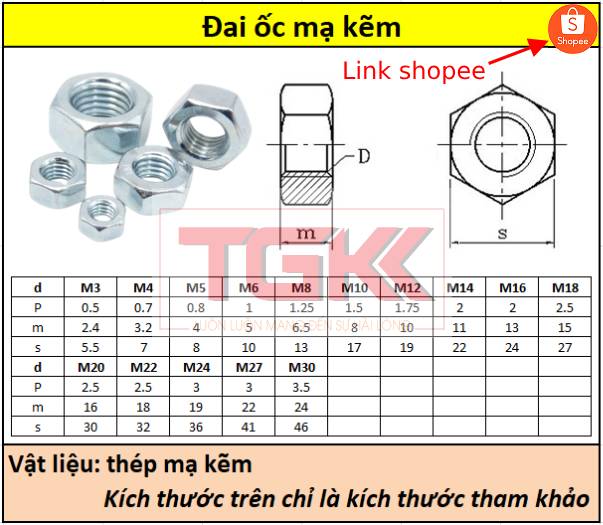 - Đai ốc mạ kẽm M3-M24 - DIN934