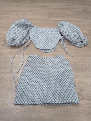 SHEBYSHJ - Set áo trễ vai tay bồng + chân váy ngắn
