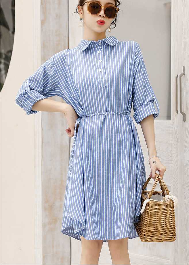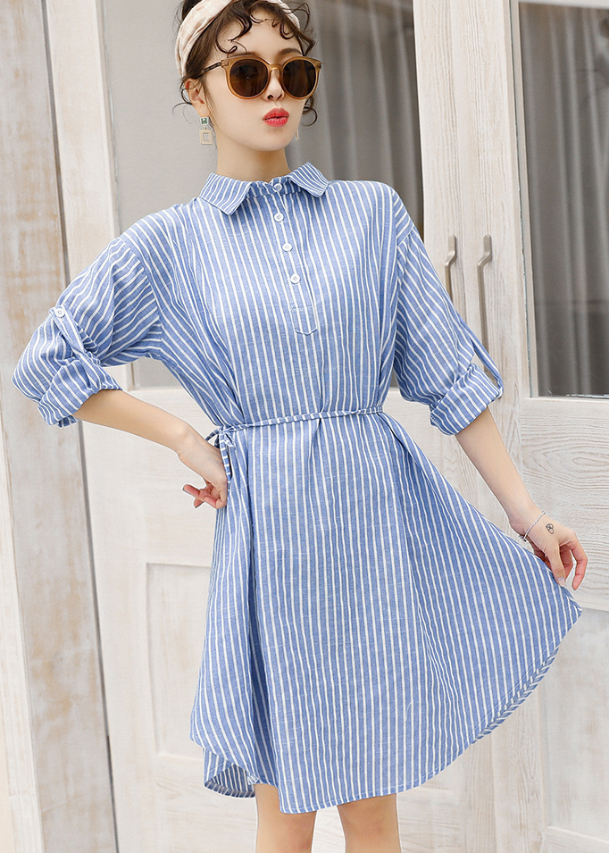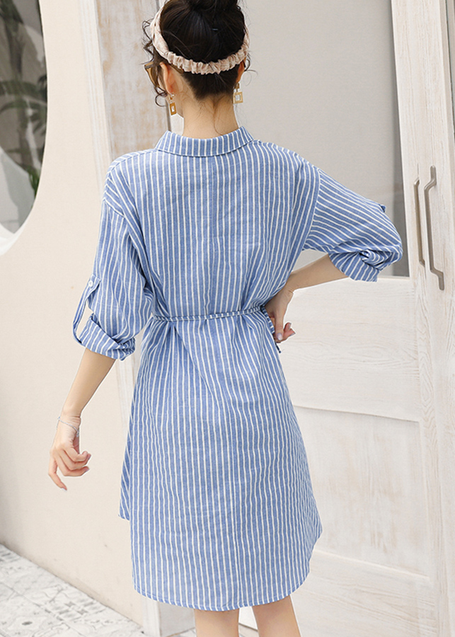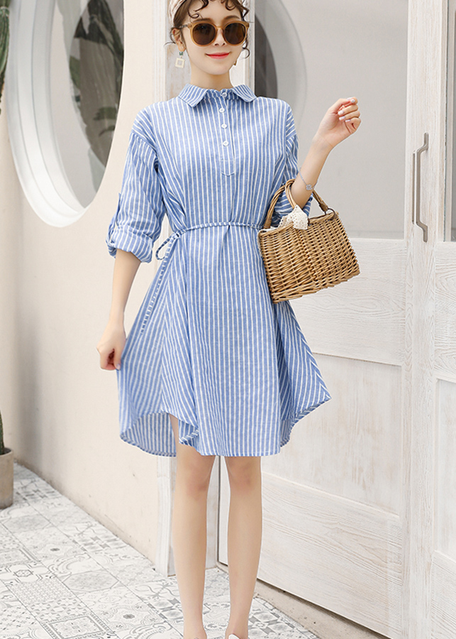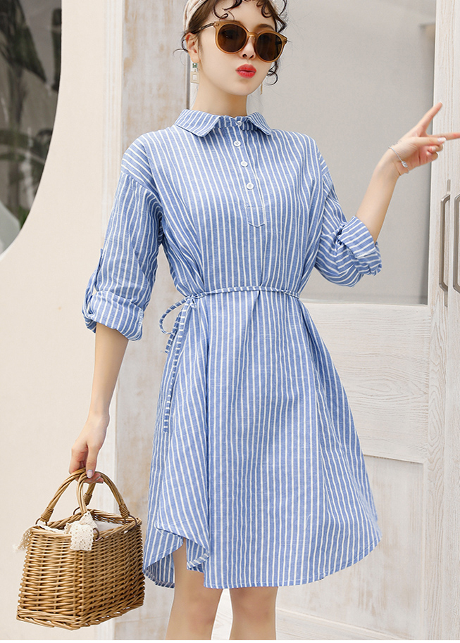 Đầm sơ mi kẻ sọc đai dời thắt eo dễ thương được thiết kế thanh nhã với kiểu đầm suông rộng trẻ trung. sang trọng.