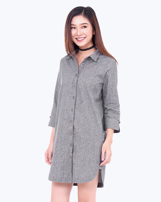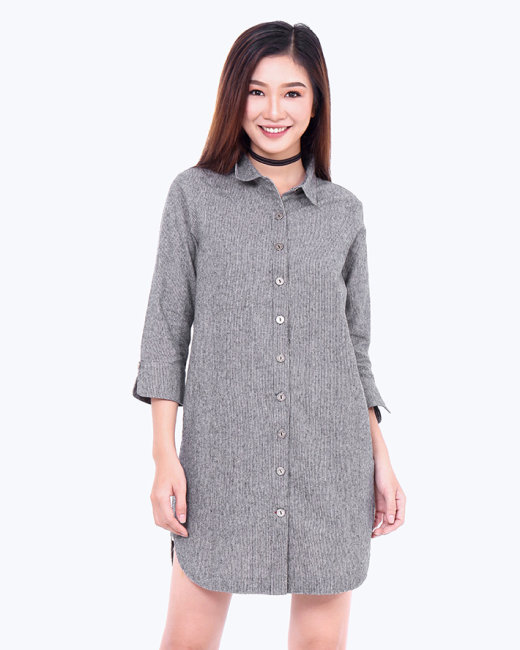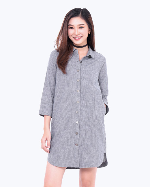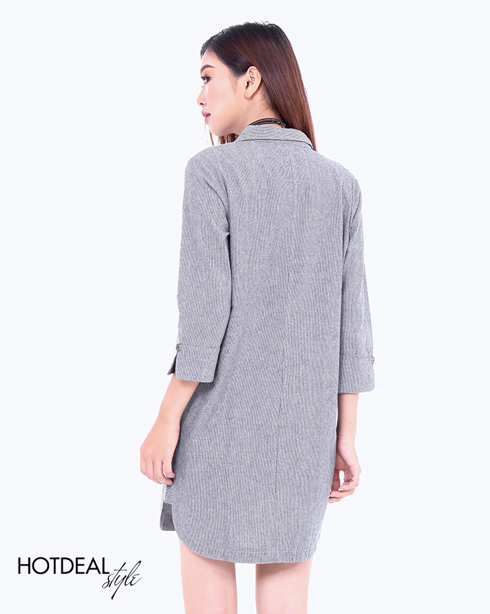 - Kiểu dáng: Đầm sơ mi form suông, tay dài.- Màu: sọc xanh, sọc xám- Size: S, M, L- Chất liệu: jean sọc