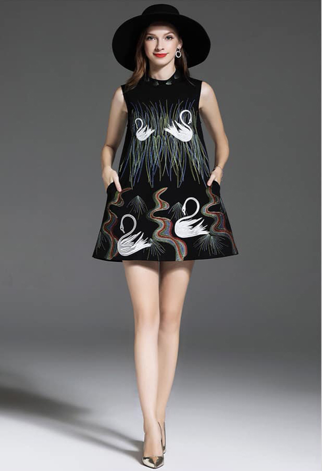 ️️Đầm Thun Thêu Cò D&G-Y Hinh 100% MK368355Size:M-L-XL-XXL Chất Liệu: Thun Lụa Thêu Hàng Cao Cấp Đẹp Y Hình 100%