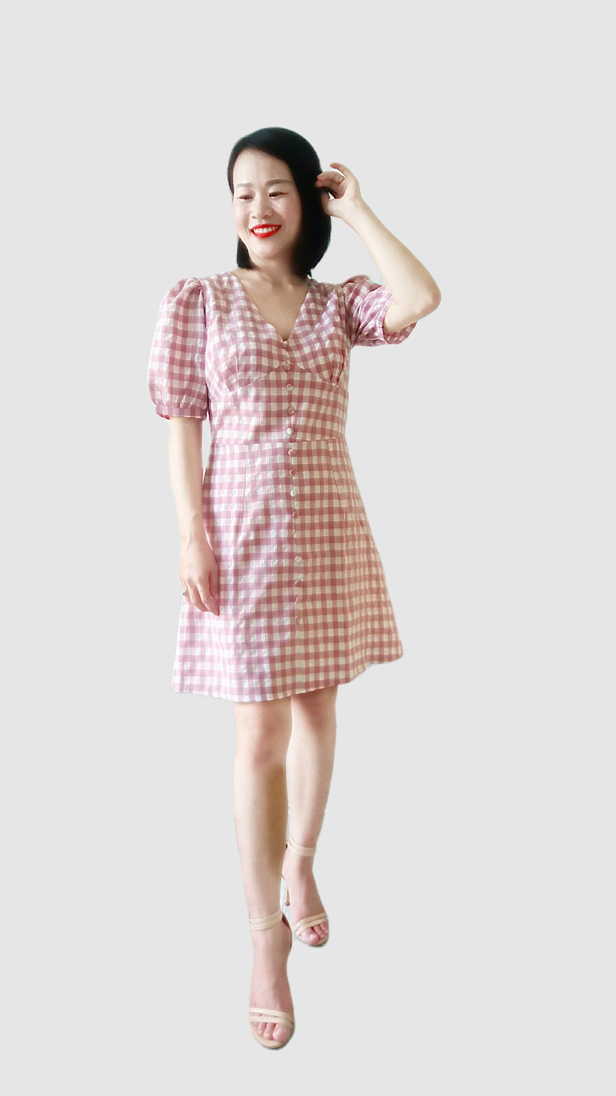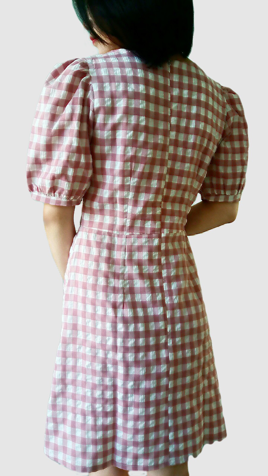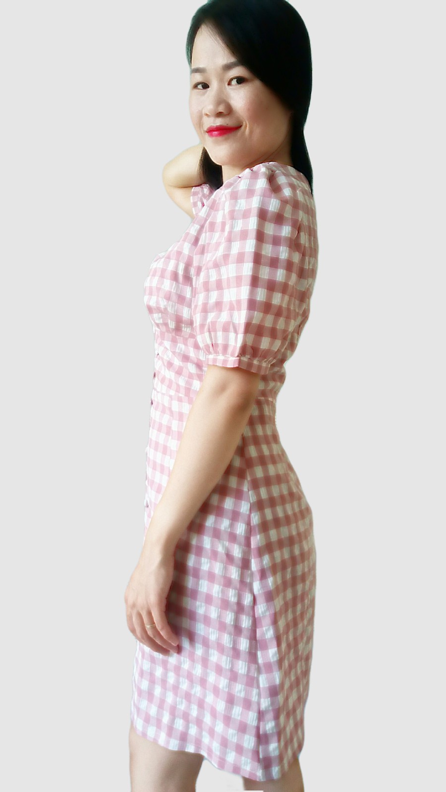 Đầm Caro Dạo Phố, đầm Công Sở Dáng Xoè Tay Phồng RD008