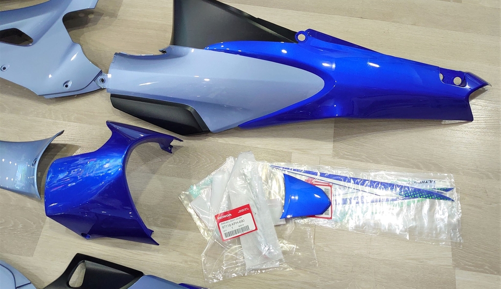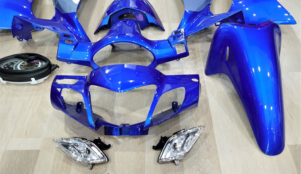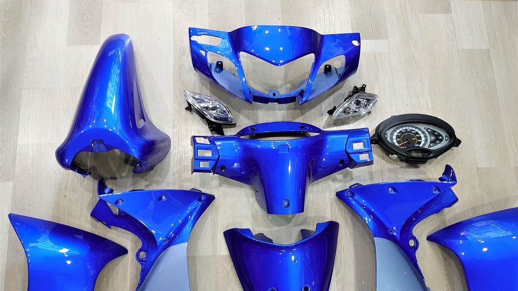 Bộ dàn áo Honda Wave 125i Thái đời 2004, màu xanh dương - bạc xám limited, tem Wave125i nổi, thích hợp lên cho Honda Future 2. Màu sắc : phối 2 màu xanh dương - bạc xám.