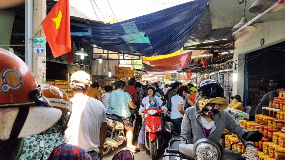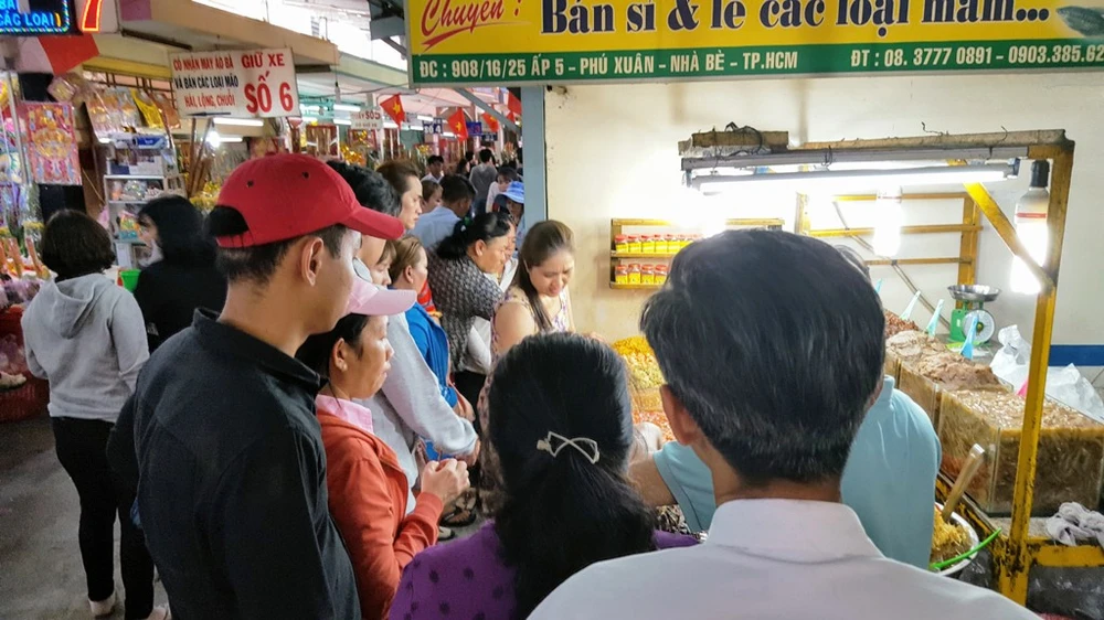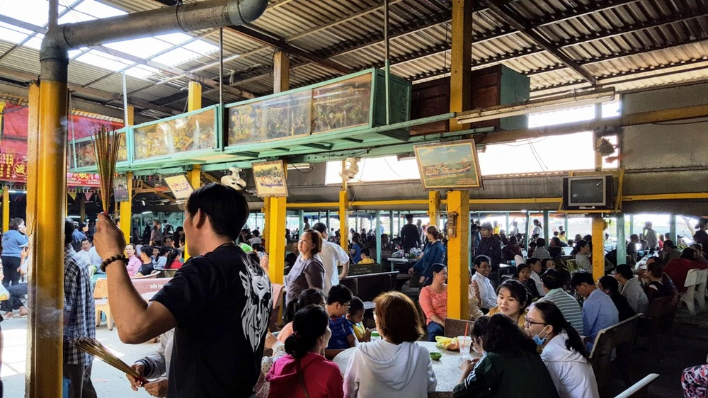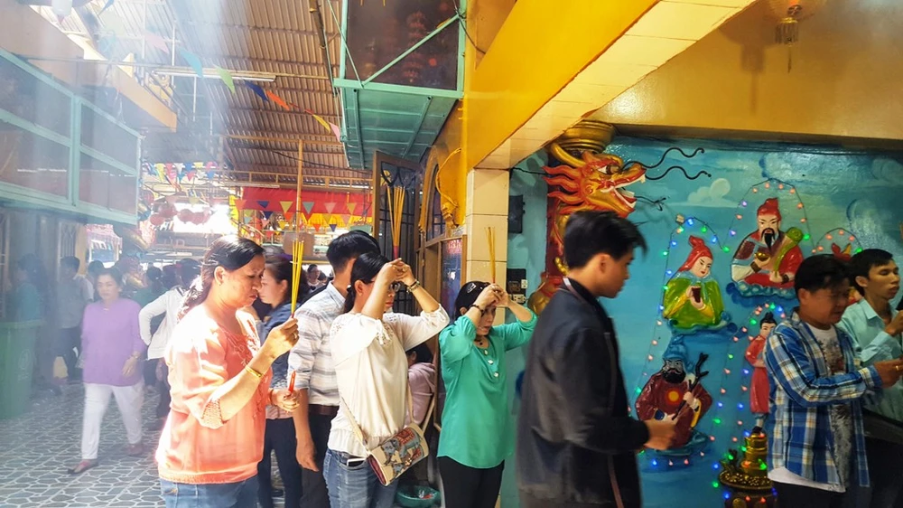 Nhiều người dân lựa chọn chùa Bà Châu Đốc 2 làm điểm đến trong đầu xuân năm mới. Những ngày này, trên hẻm 908 Huỳnh Tấn Phát, ấp 5, xã Phú Xuân, huyện Nhà Bè, TP.HCM, đường dẫn vào chùa Bà Châu Đốc 2 luôn trong tình cảnh đông đúc, chật chội.
