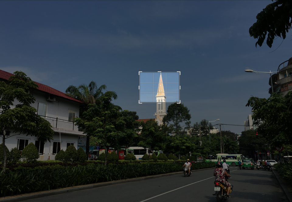 Tuy nhiên không phải lúc nào điều kiện ánh sáng cũng thuận lợi, chúng ta chụp ngoài trời rất nhiều và sẽ có sự khó khăn khi chụp do chênh lệch độ sáng. Những bức ảnh bên dưới có sự chênh lệch sáng tối mạnh giữa các vùng ảnh, chủ thể, môi trường. Nhìn vào vùng sáng của ảnh, có thể thấy 6S tái tạo các chi tiết vùng sáng tốt. Mặc dù ánh sáng chênh lệch nhiều, đo sáng vào các chủ thể mặt đất nhưng các gợn mây vẫn được giữ lại ở mức khá. Nếu cố ý đo sáng vào vùng tối trên ảnh, tất nhiên vùng trời sẽ cháy sáng nhưng 6S vẫn tái tạo được màu xanh của vùng trời mặc dù thời tiết lúc chụp bức ảnh này không đẹp lắm, trời không xanh rực rỡ như mọi ngày. Thậm chí mặt ánh sáng mặt trời cũng được gom gọn lại, không ảnh hưởng đến các chi tiết khác