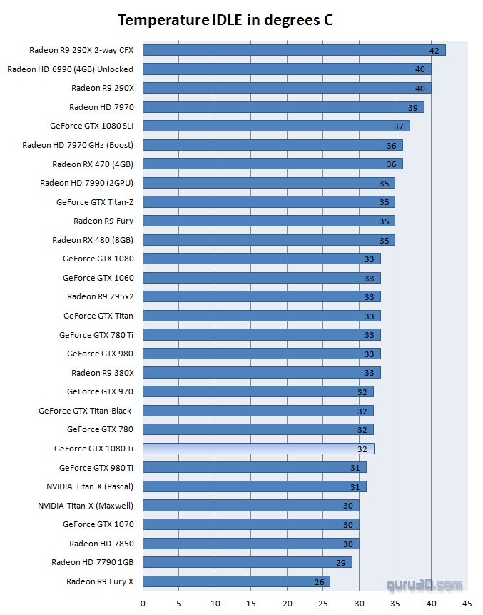 Khi không tải, nhiệt độ card đồ họa rơi vào khoảng 33 độ C, tương đối bình thường. Tuy nhiên giống như mọi phiên bản reference khác của Nvidia, card đồ họa vẫn rất nóng: