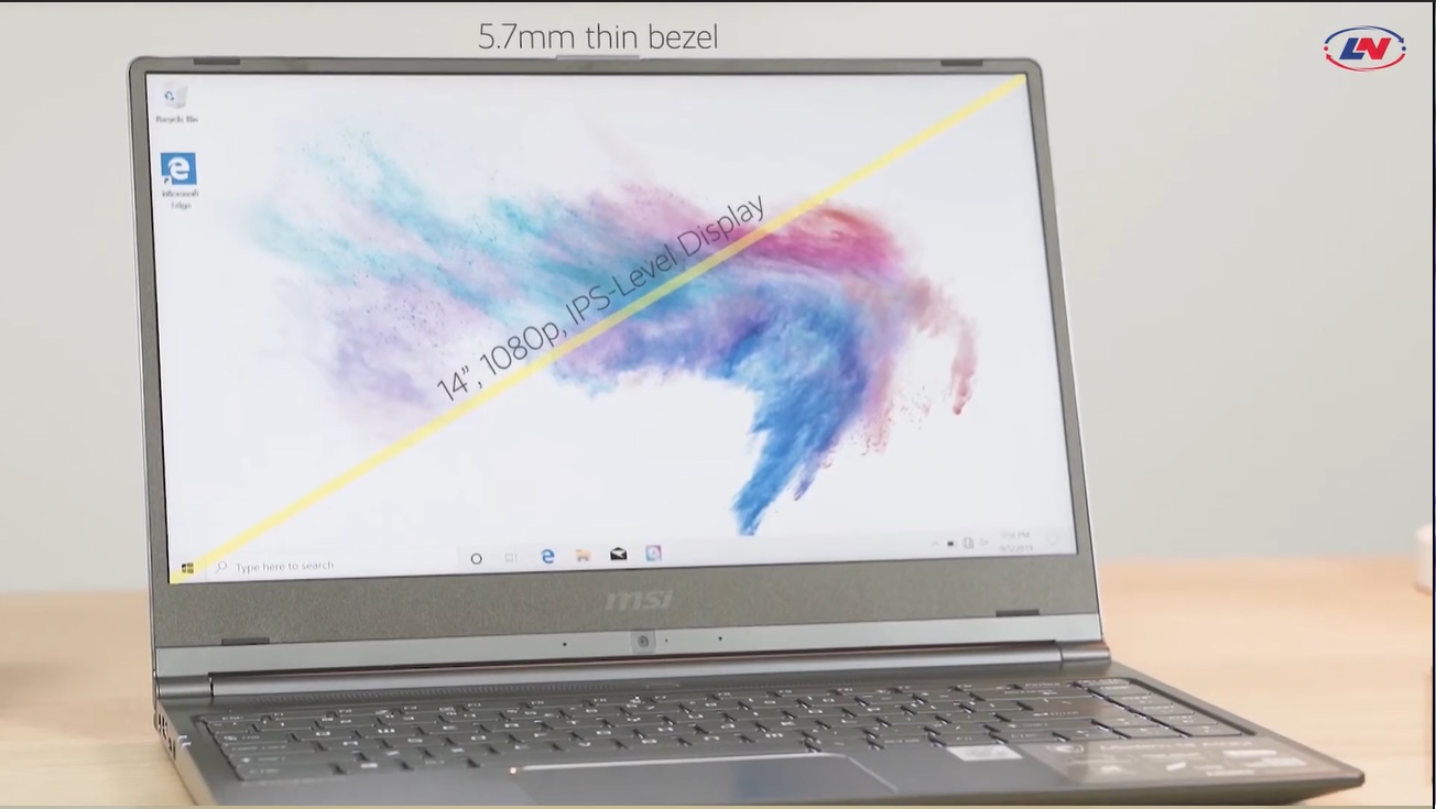 ✓ Modern 14 được trang bị màn hình FullHD (1920x1080) chuẩn IPS, cho góc nhìn rộng 178 độ với kích thước 14.1 inch và phần viền dát mỏng ở cạnh trên lẫn 2 cạnh bên. Màu sắc hiển thị của màn hình tốt, độ phủ màu 99% sRGB.