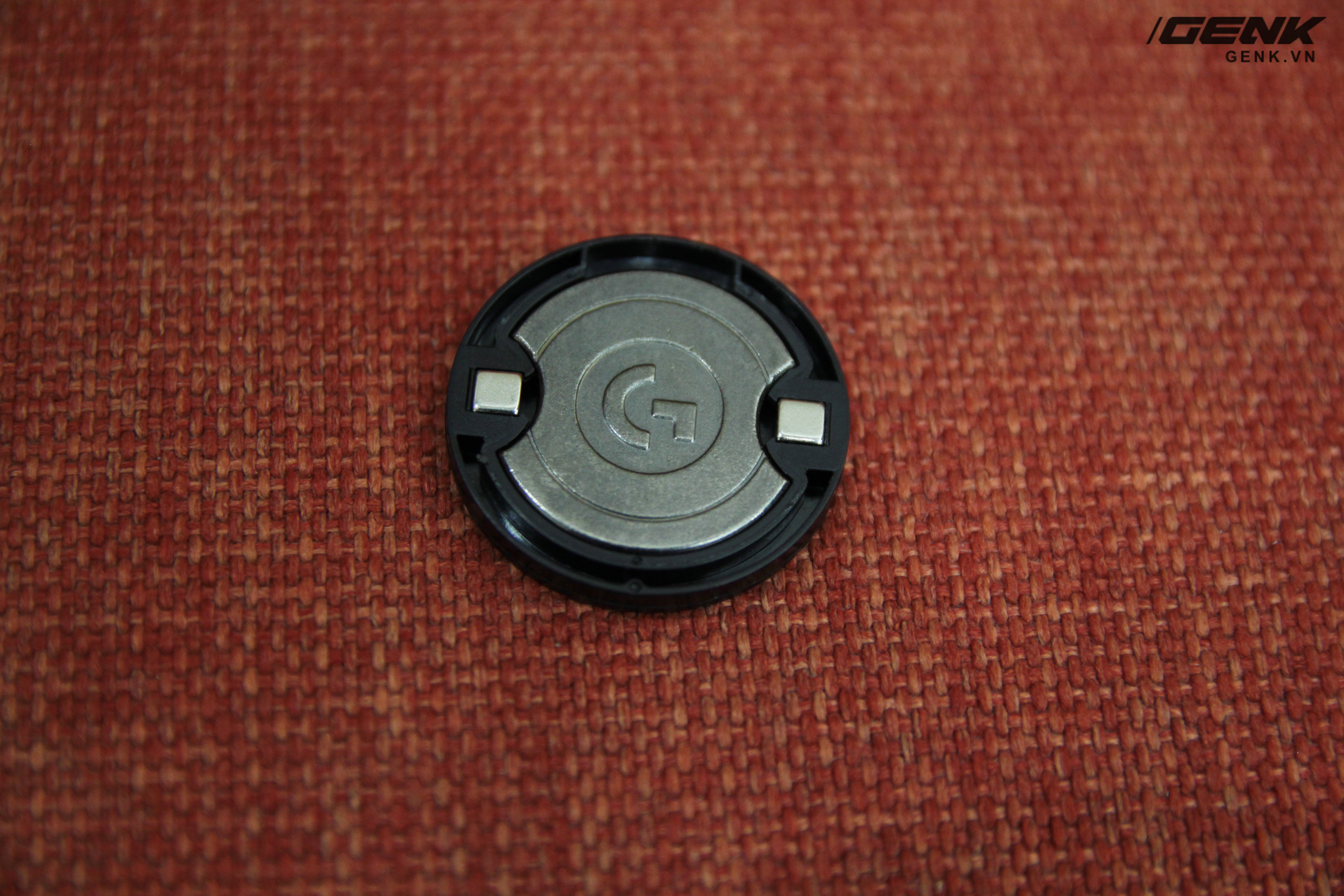 Mặt sau của chuột. Ở phía dưới là vị trí lắp tạ được đính liền với chuột bằng nam châm bên trong.