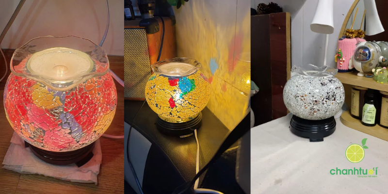 Đèn xông bằng nhiệt (điện hoặc nến): Khi được làm nóng, nước và tinh dầu sẽ bay hơi, lan tỏa hương thơm dịu nhẹ khắp phòng.