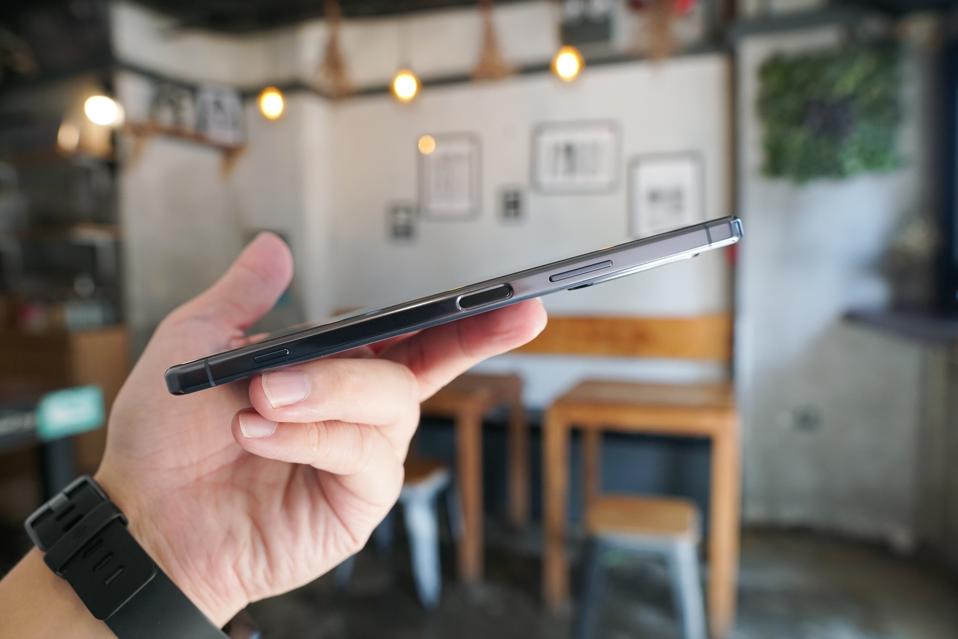 Tuy nhiên, đó không phải điều tồi tệ khi xét đến trải nghiệm thực tế. Máy thực ra có độ bám tốt và cầm nắm thoải mái và tự tin hơn nhiều. Màn hình OLED 6.5 inch với tỉ lệ 21:9 đã trở thành đặc sản của Sony trong làng smartphone. Thiết kế này giúp bề ngang hẹp hơn nên cầm nắm gọn gàng hơn, cũng như phù hợp để tiêu thụ các nội dung chiều dọc của mạng xã hội và phim ảnh.