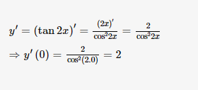 Vậy đạo hàm của hàm số y=tan2x tại x=0 bằng 2