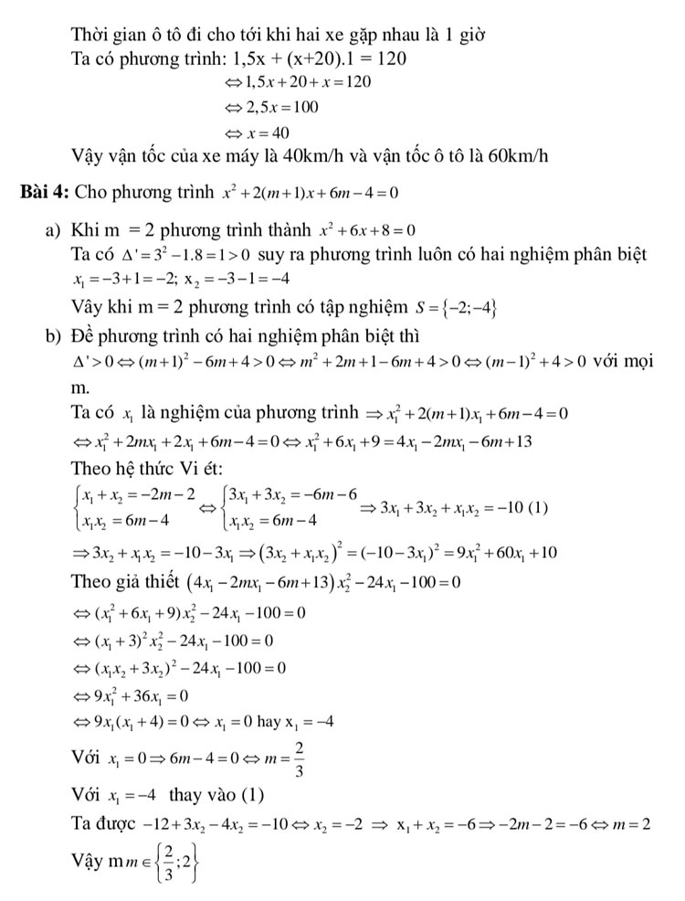 Các dạng Toán Vi ét thi vào lớp 10