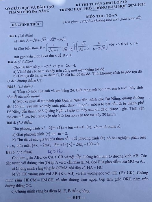 - 1. Đề thi vào 10 môn Toán Đà Nẵng 2024