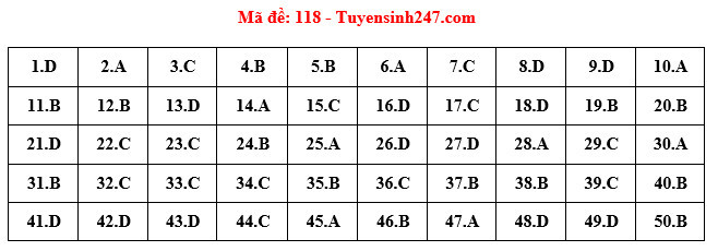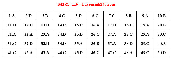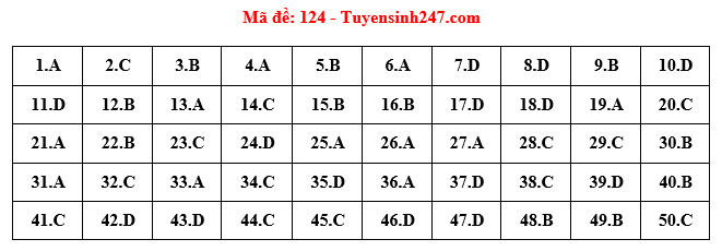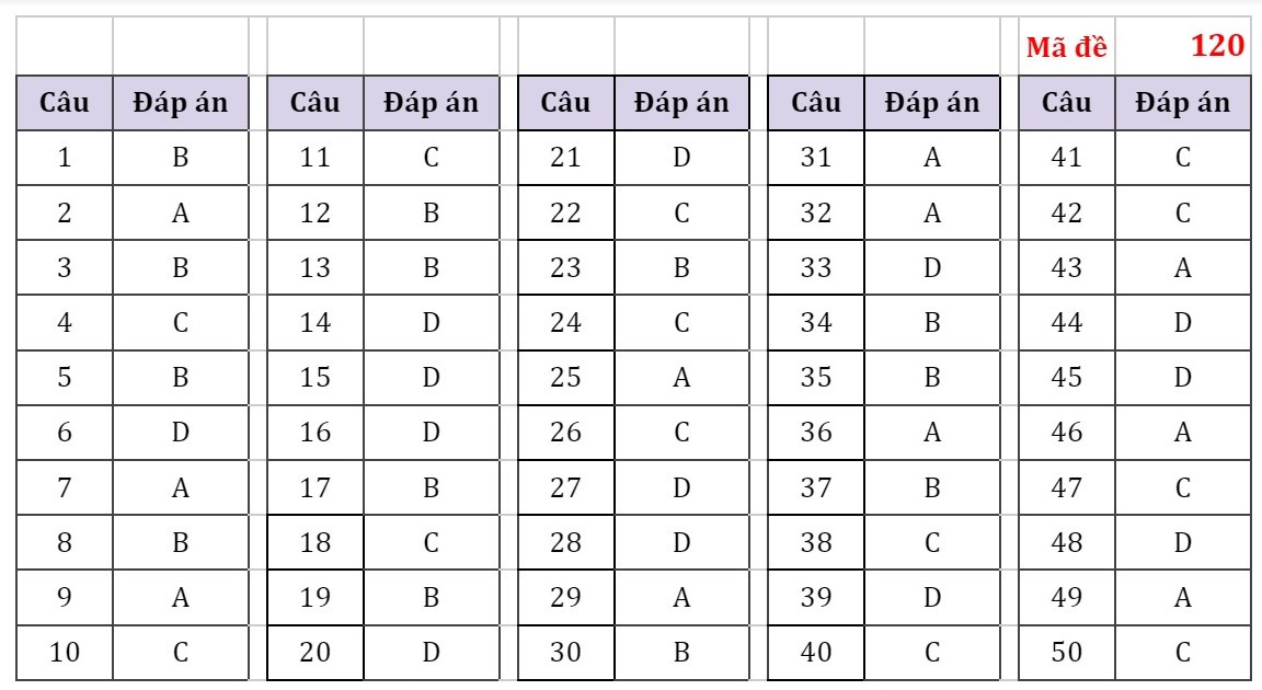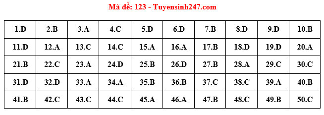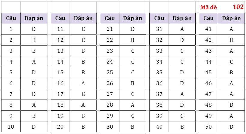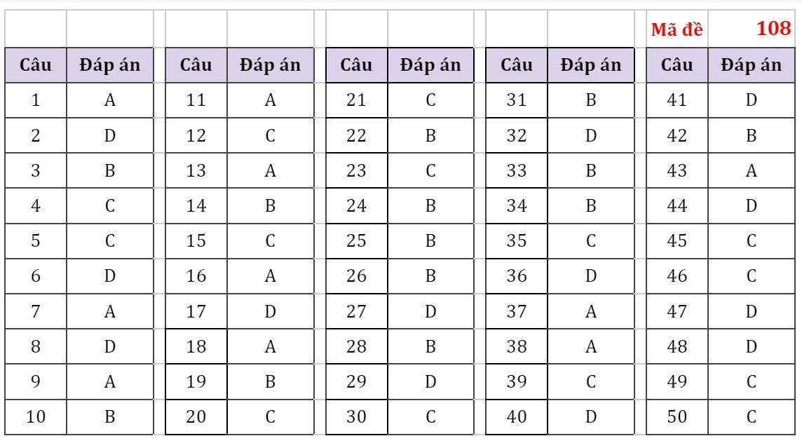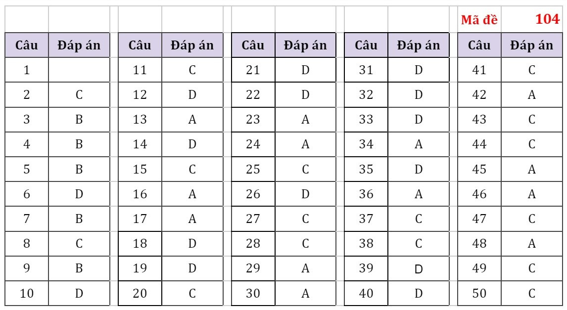 Đáp án đầy đủ 24 Mã đề Thi Môn Toán Kỳ Thi Tốt Nghiệp THPT Năm ...