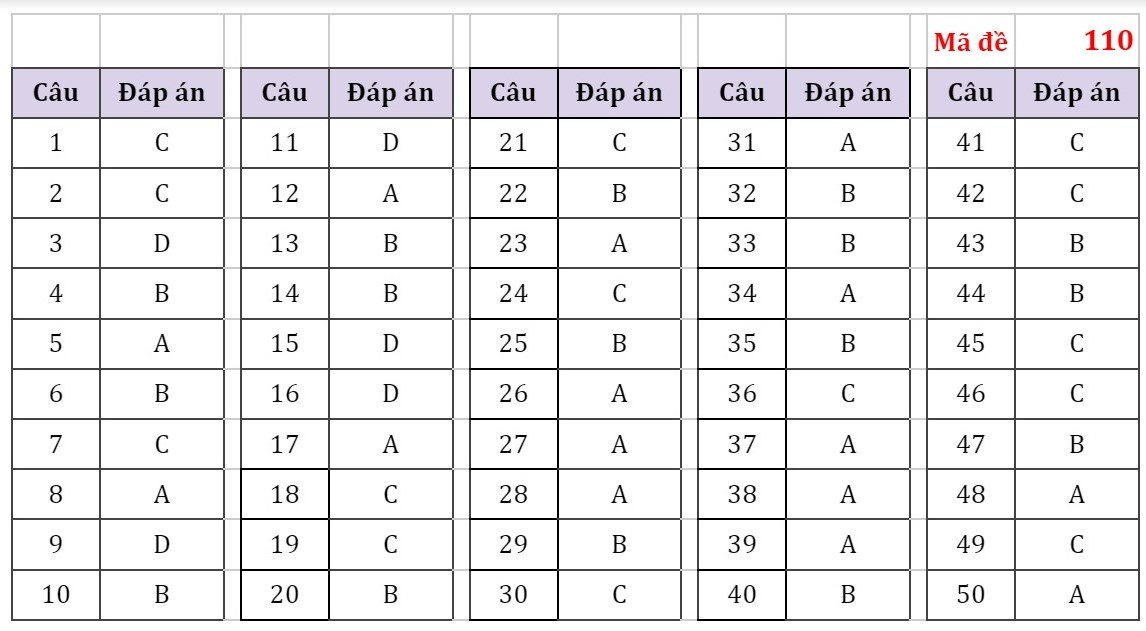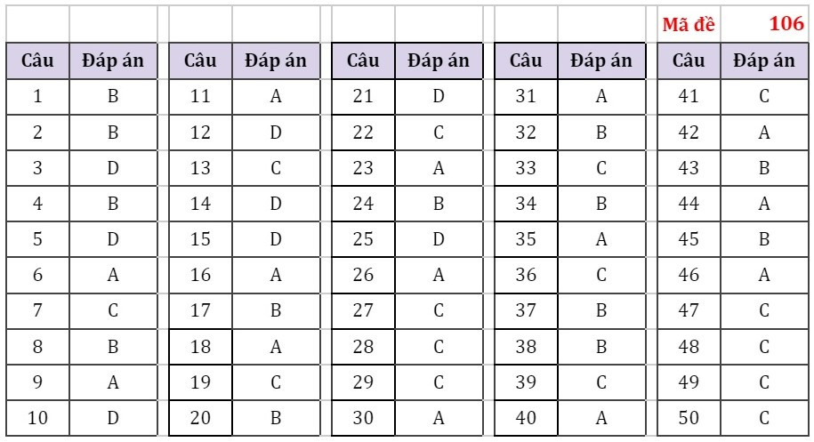 Đáp án đề Thi Môn Toán Tốt Nghiệp THPT Quốc Gia 2022 (Full Mã đề)