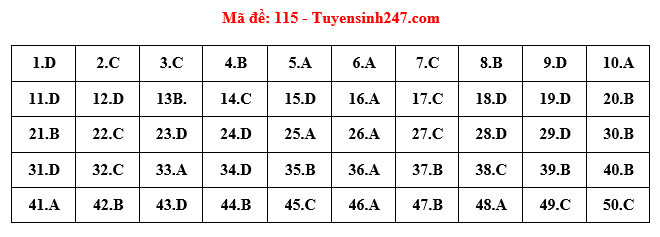 Full đáp án Chính Thức Của Bộ GD&ĐT Môn Toán Thi Tốt Nghiệp ...