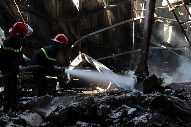 Nhận được tin báo, Công an thị xã Dĩ An đã điều động hàng chục cán bộ, chiến sỹ cùng 9 xe chữa cháy chuyên dụng đến hiện trường triển khai phương án dập lửa. Sau hơn 1 giờ tích cực chữa cháy, đám cháy được dập tắt. Tuy nhiện, toàn bộ xưởng phun sơn của công bị thiêu rụi và đổ sập.