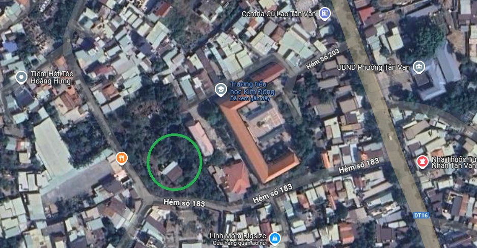 Khu đất được khoanh xanh là đất được quy hoạch làm đất giáo dục thể hiện trên bản đồ Google vệ tinh.