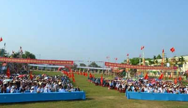 | Nhân dân xã Điện Quang trong ngày kỷ niệm giải phóng quê hương. |