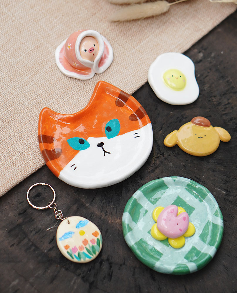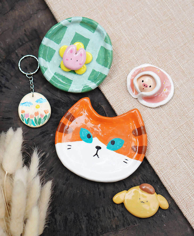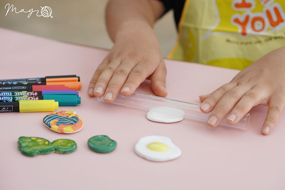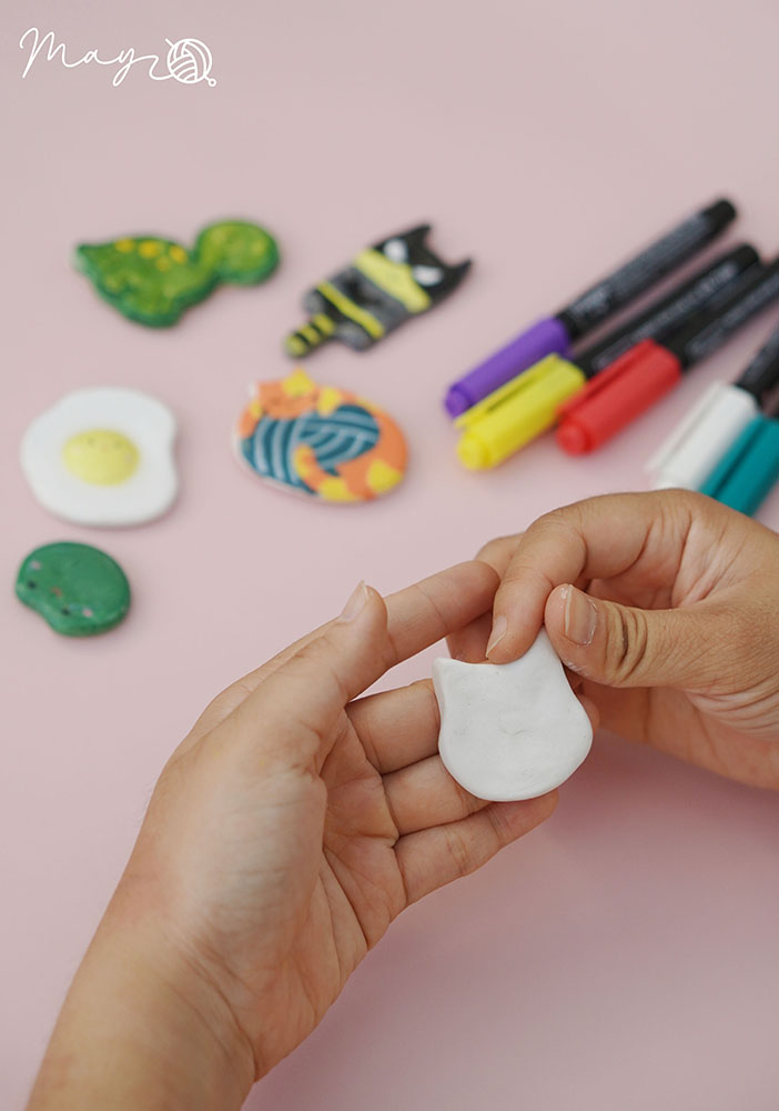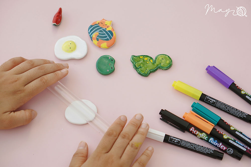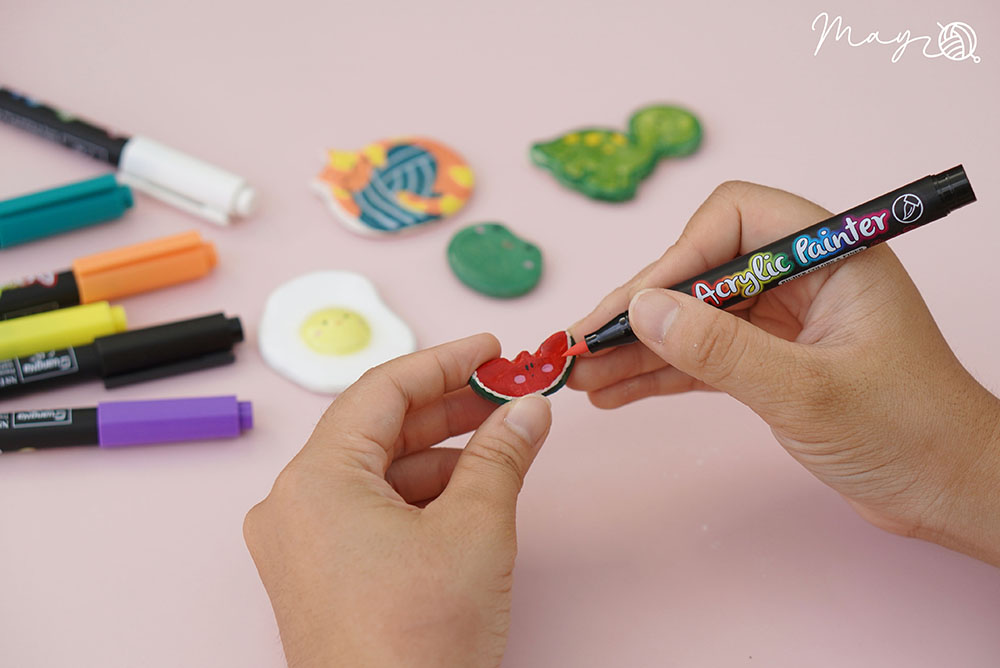 Sau khi làm và nướng xong sản phẩm, bạn có thể dùng màu acrylic hoặc acrylic marker để tô lên sản phẩm.