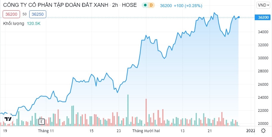 Trên thị trường chứng khoán, kết phiên giao dịch sáng ngày 29/12, cổ phiếu DXG của Đất Xanh tăng 0.8% lên mức 36.150đ/cp.