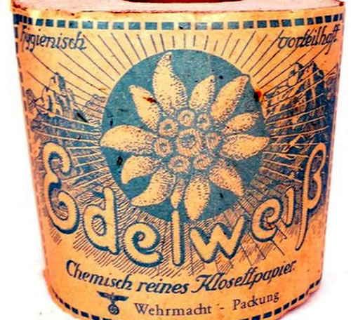 (Cadn.com.vn) - Giấy vệ sinh được cấp cho quân đội của Hitler trong Thế chiến II được đưa ra bán đấu giá ở Dublin, Ireland. Cuộn giấy hiệu Edelweiss chưa mở được định giá từ 80-120 EUR. Một nhà sưu tập Ireland đã sưu tầm nó cách đây 25 năm song đến nay cuộn giấy vẫn còn nguyên vẹn.