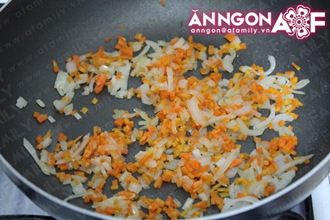 | | Thêm cà rốt vào xào cùng khoảng 3-4 phút cho cà rốt mềm. |