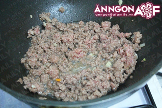 | | Bước 5: Vẫn trong chảo đã xào thịt bò, bạn phi thơm hành tây. |
