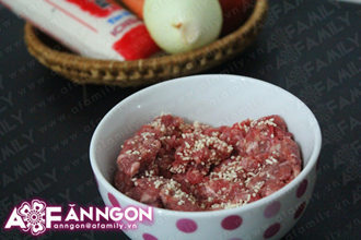 | | Nguyên liệu: - 1 - 2 cây đậu hũ non - 100g thịt bò xay - ½ củ hành tây - 1 củ cà rốt nhỏ - 1 trái cà chua - Gia vị. |