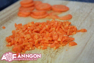 | | Bước 1: Cà rốt cạo vỏ, thái hạt lựu. |