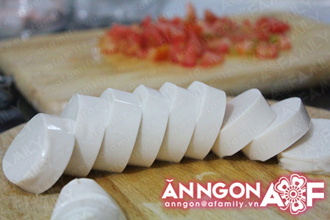 | | Bước 3: Đậu hũ non cắt miếng dày khoảng 1.5cm. |