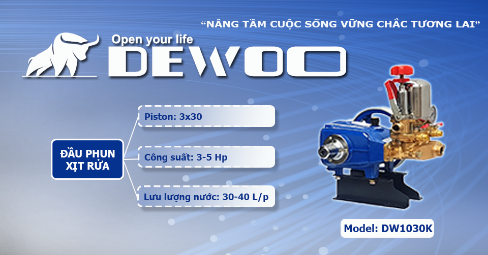 - ĐẦU PHUN XỊT RỬA ÁP LỰC CAO- ĐẦU RỬA XE 3-5HP CHÍNH HÃNG DEWOO DW-1030K